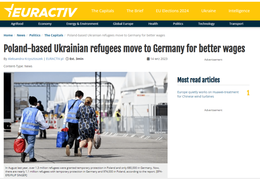 Germany has seen more Ukrainian refugees than Poland since late 2022, with most refugees moving West for better welfare standards and job opportunities, a new report by the EWL Migration Platform and the Centre for East European Studies (SEW) at the University of Warsaw reads.
