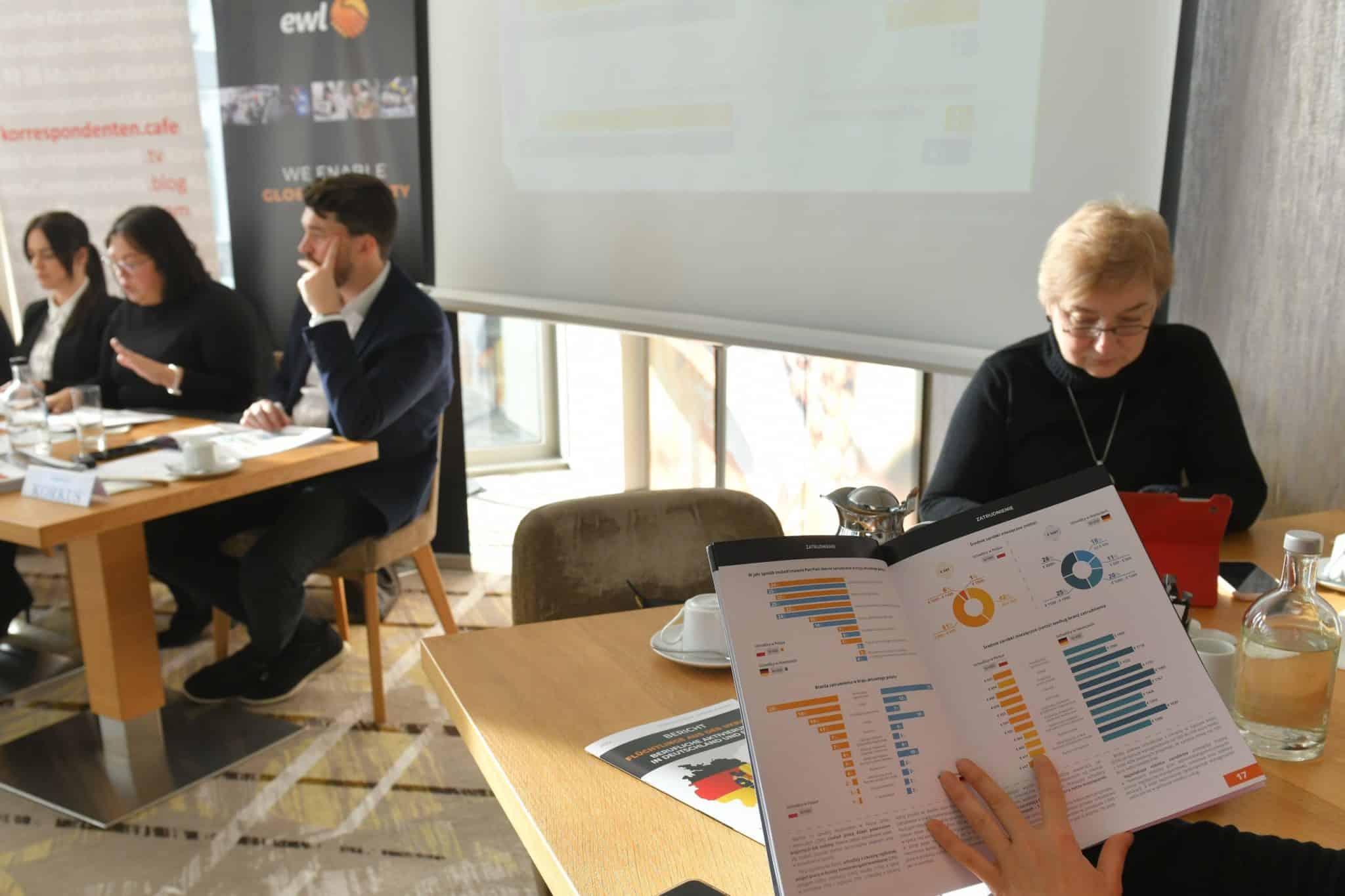 The key findings of the survey conducted among refugees from Ukraine who arrived in Poland and Germany after 24 February 2022 and took up employment in these countries were discussed during a meeting with the representatives of the media, NGOs, experts, officials and diplomats. The meeting was chaired by the well-known journalist Ewald Konig.
