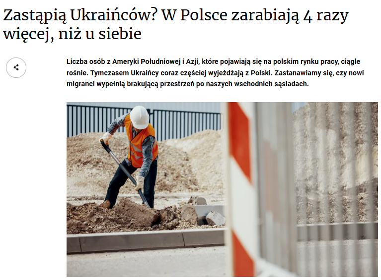 Liczba osób z Ameryki Południowej i Azji, które pojawiają się na polskim rynku pracy, ciągle rośnie. Tymczasem obywatele Ukrainy coraz częściej wyjeżdżają z Polski – poinformował 15 grudnia portal Money.pl.