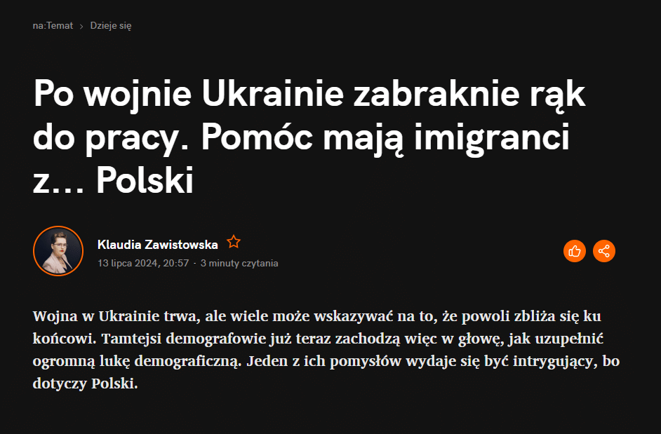 Po wojnie Ukrainie zabraknie rąk do pracy. Pomóc mają imigranci z Polski?