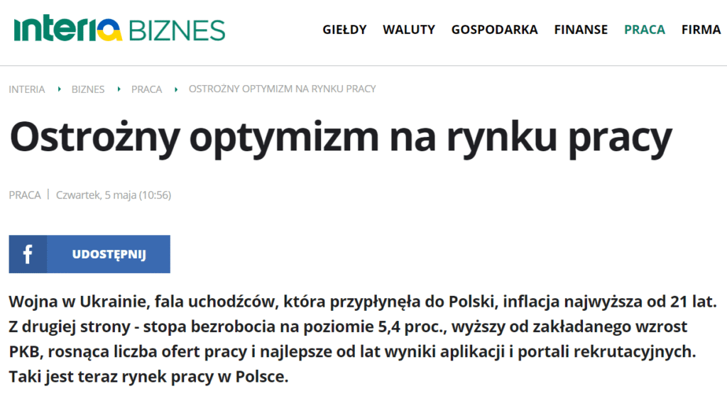 Interia: Ostrożny optymizm na rynku pracy